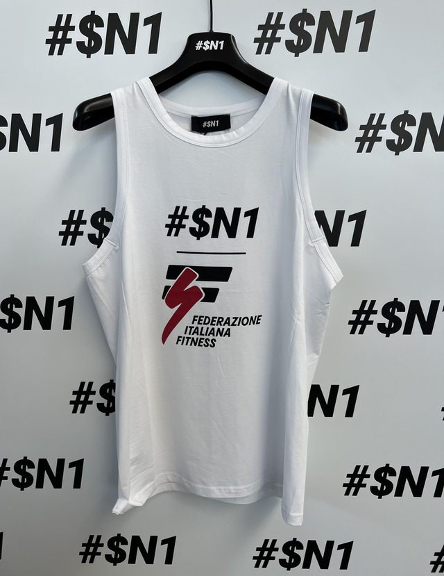 CANOTTA BIANCA CON SCRITTA COACH - FEDERAZIONE ITALIANA FITNESS 97% COTONE 3 % ELASTEN TAGLIA dalla XS alla XXL